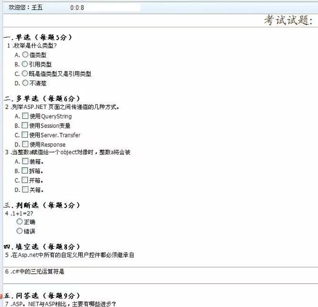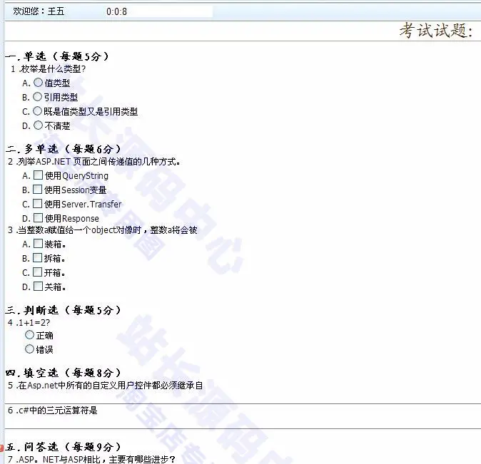 大型在线考试系统源码 在线测试 考核系统 asp.net源码 c#框架
